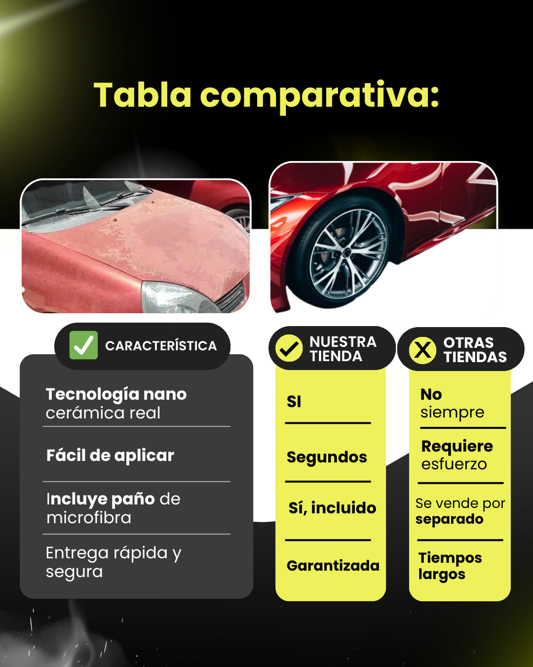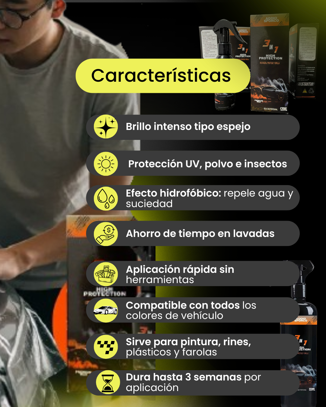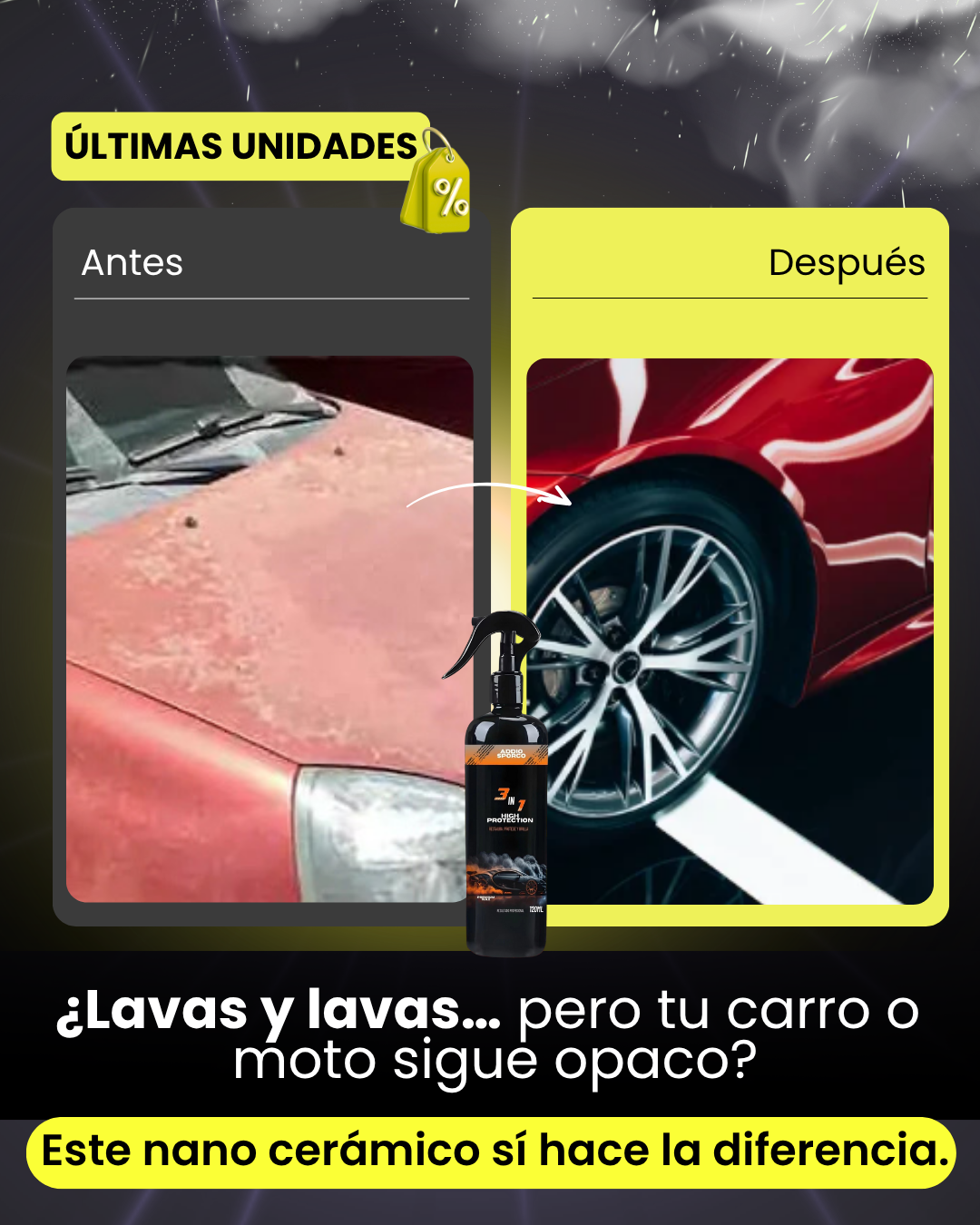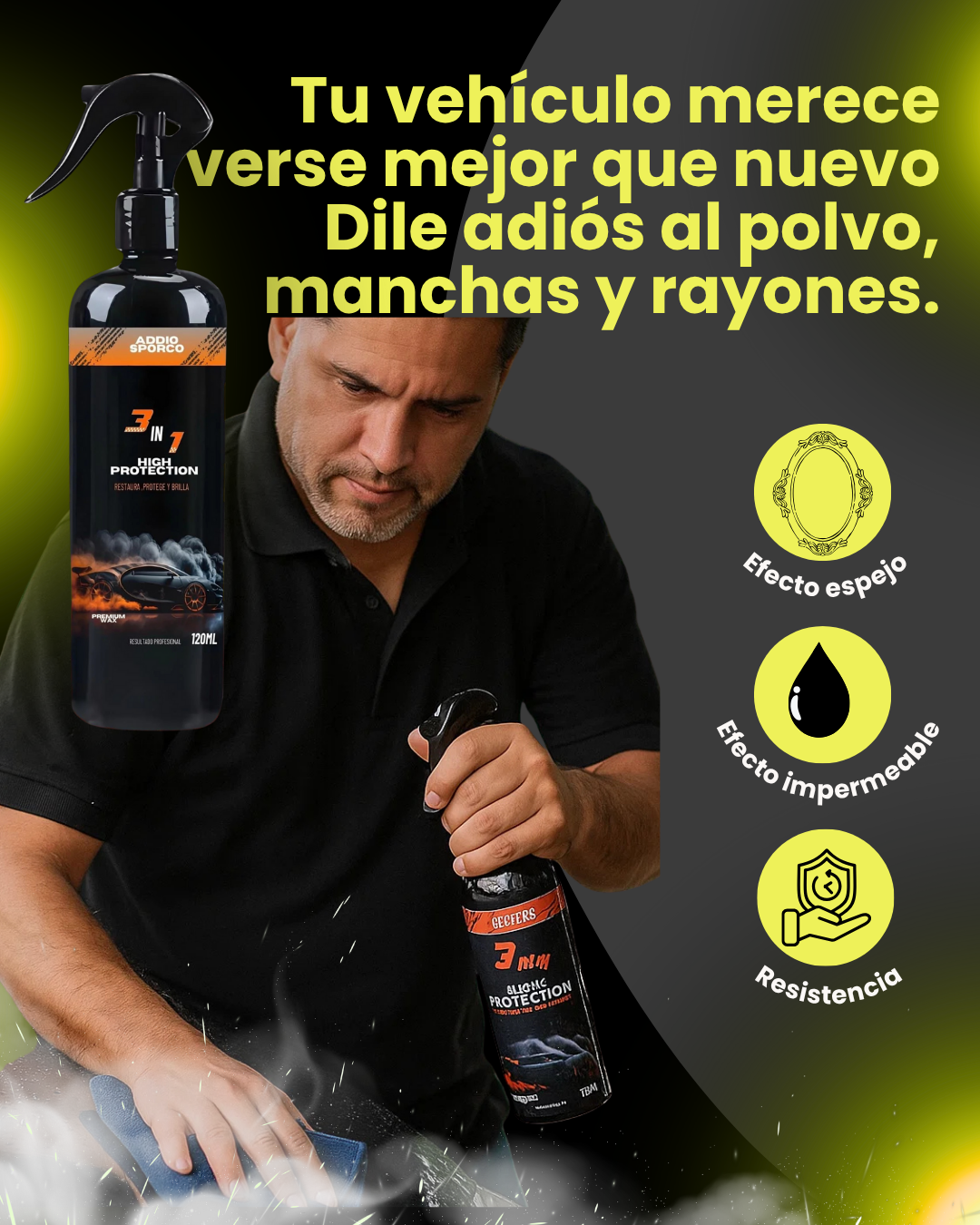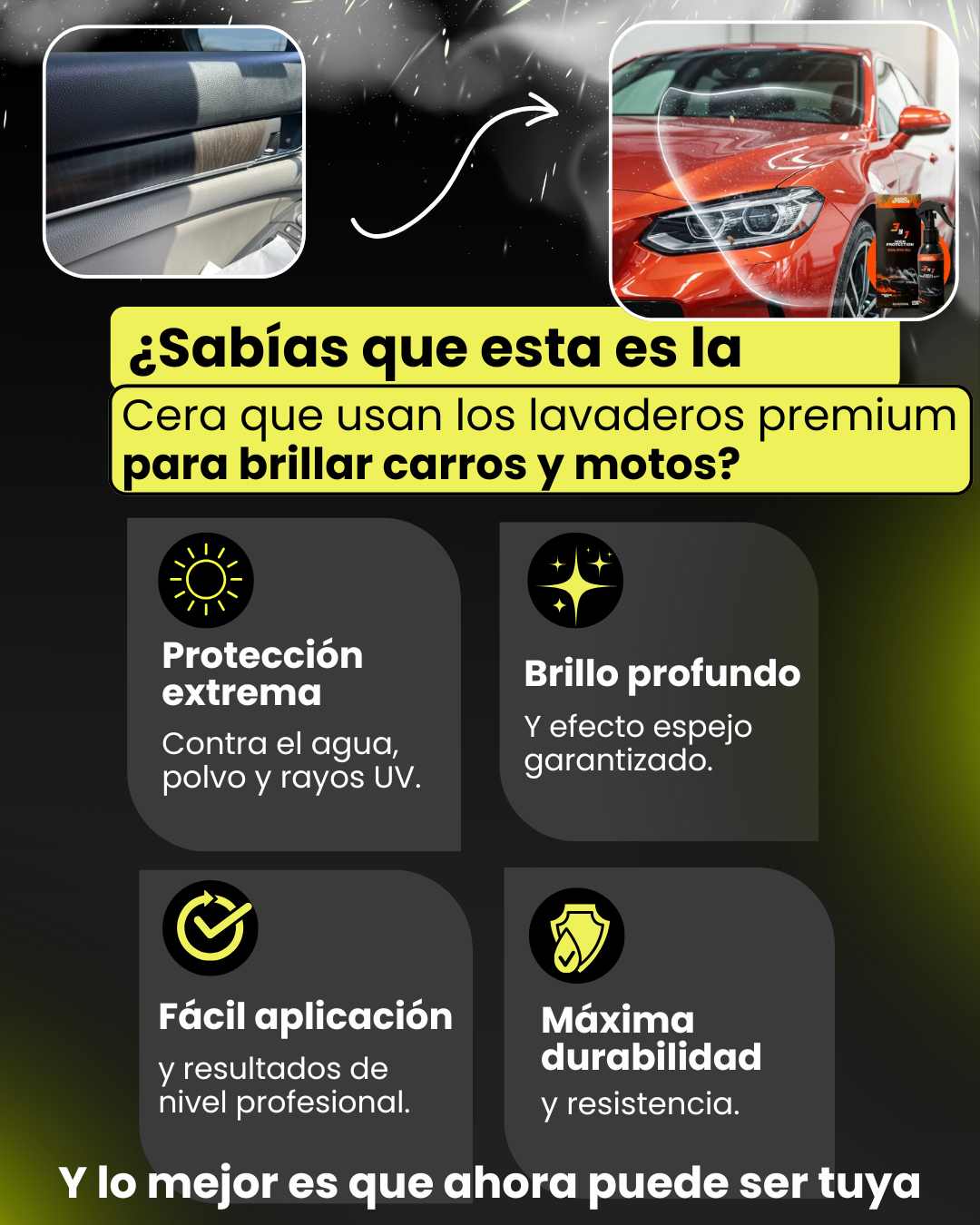 Es perfecto para autos, motos, bicicletas y cualquier superficie pintada. También puedes aplicarlo en faros, plásticos y rines.