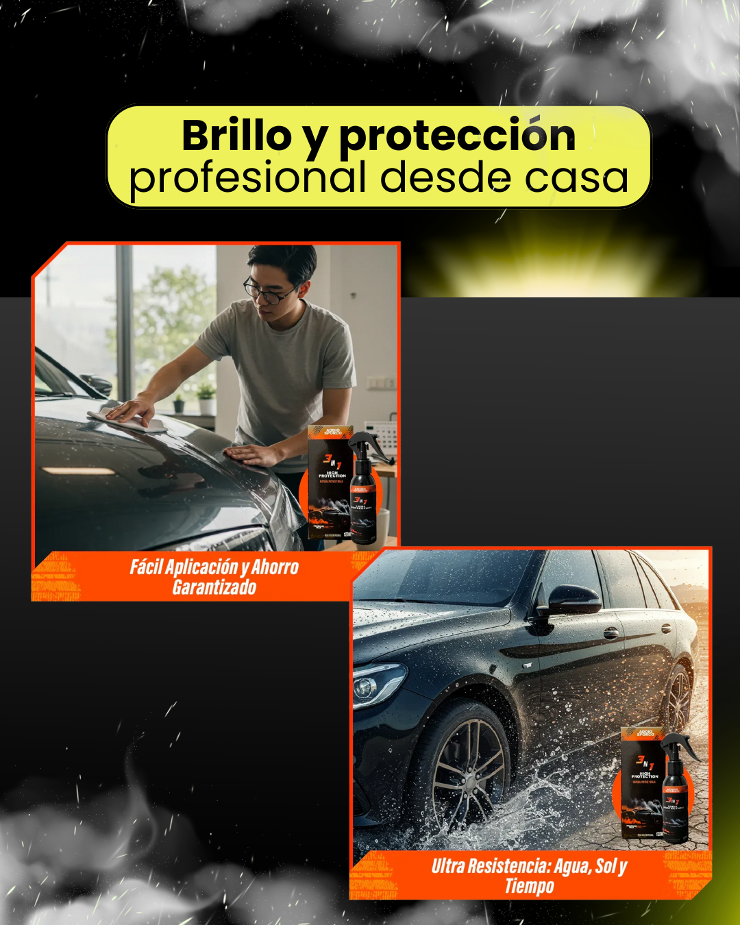 La protección hidrofóbica y el brillo intenso duran hasta 3 semanas por aplicación, dependiendo de la exposición del vehículo al sol, la lluvia y el polvo.
